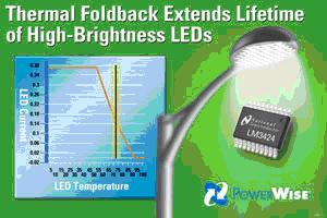 由于实际作业环境的影响,LED的内部温度可能会飙升至极高的水平,但热能回折电路可以监控系统热能,以免温度失控。LED的温度若超过临界值,LED的寿命及照明效果就会受影响。工程师只要采用LM3424芯片,就可为照明系统的LED设定温度及斜率分界点,确保LED能安全地作业。