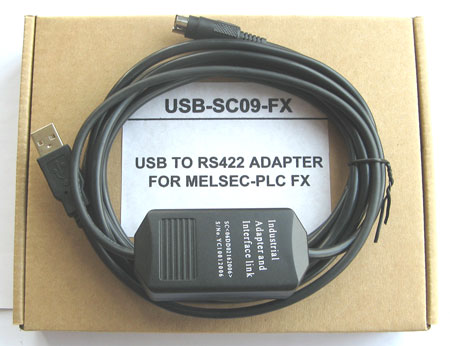 USB-SC09 USB接口的三菱 PLC 编程电缆,USB/RS422 接口,仅用于三菱 FX系列,带通信指示灯, 长度2米/PCS